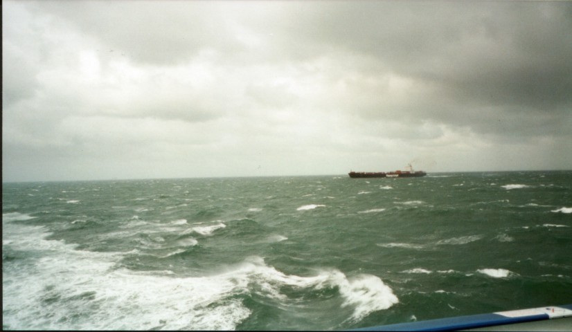 Wir sind um ca. 9Uhr aufgestanden und dann zum Frühstück (6,50£). Haben dort dann noch lange Kaffee getrunken. War lustig. Da gibt es ein Fenster über 2 Decks mit Sicht nach vorne. Wir saßen auf dem oberen Deck. Das Schiff schwankte so stark daß am höchsten Punkt nur noch der Himmel und am tiefsten Punkt nur noch Wasser in dem Fenster zu sehen war. Wenn da nicht so manchem das Frühstück wieder hoch kam.