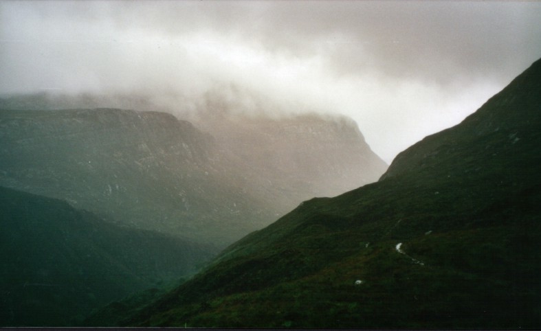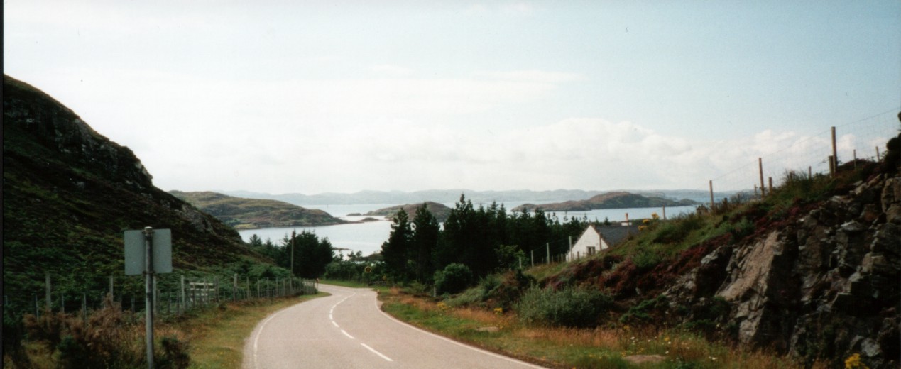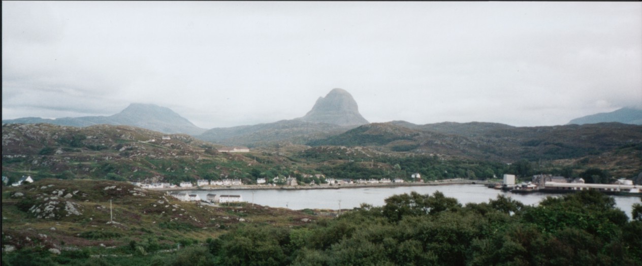 Die Fahrt am Loch Assynt lang ist supergeil. Im See liegen viele bewaldete Inseln. Zusammen mit dem Suliven Massiv im Hintergrund ein fabelhaftes Panorama. Leider habe ich keine Photos gemacht. Aus dem Bus raus kam das nicht.